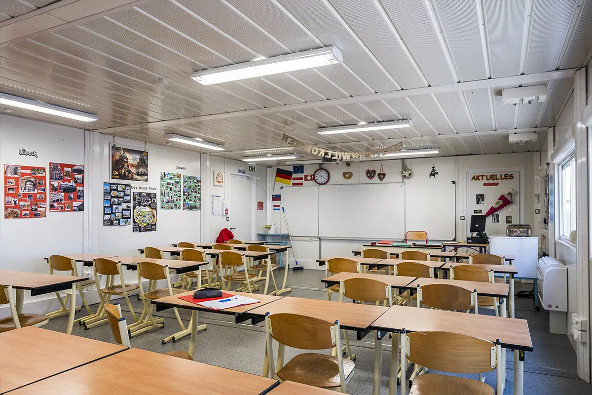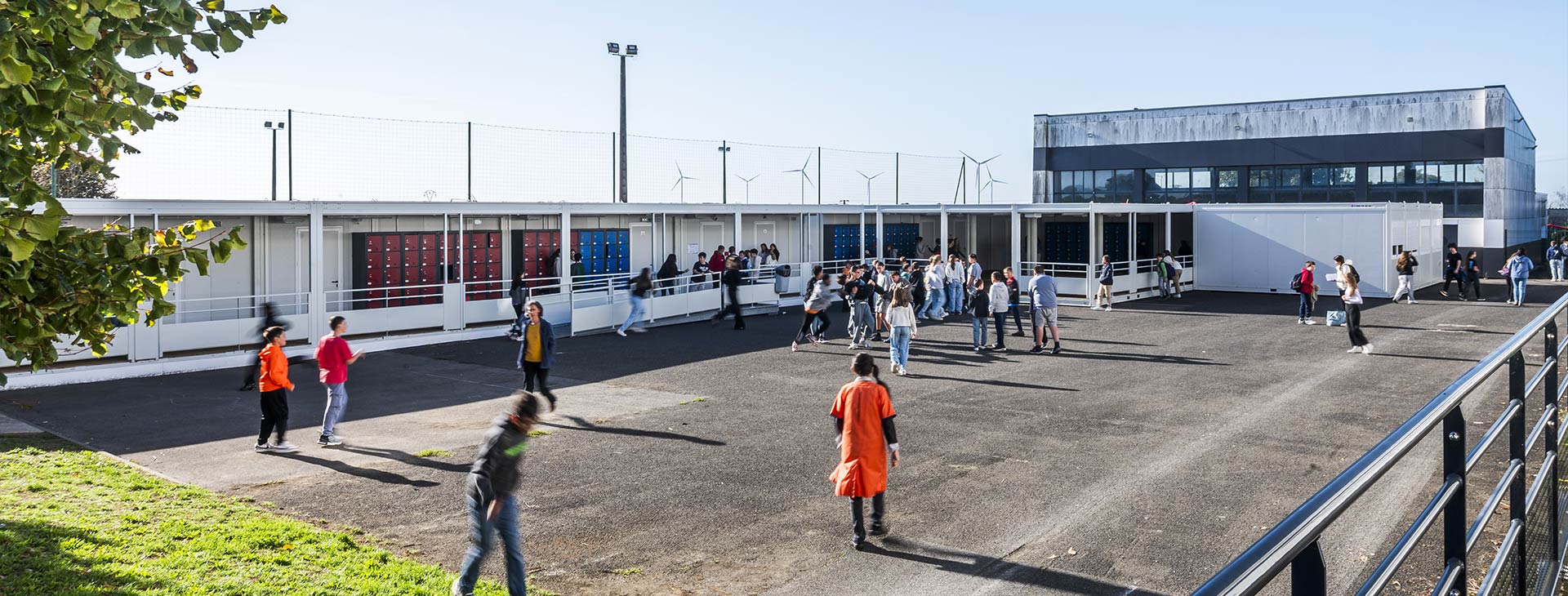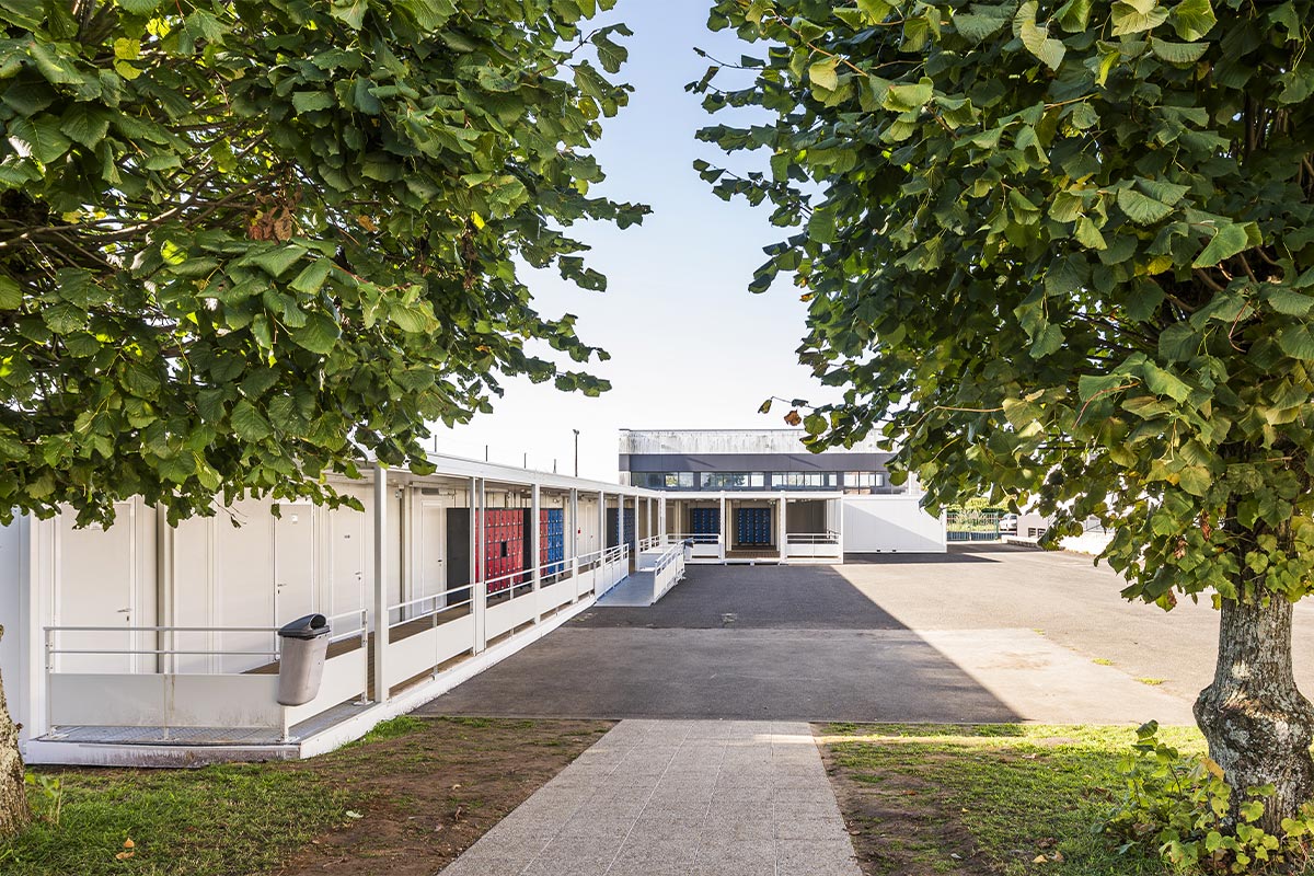Livrés en 3 semaines, ces bâtiments comprennent deux salles de sciences, six salles de classe standards ainsi que des blocs sanitaires. Une terrasse en bois et des accès conformes aux normes PMR* ont également été aménagés.