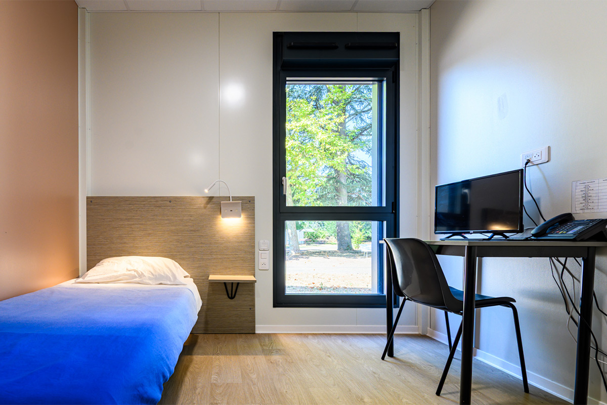 Le bâtiment, d’une superficie totale de 1 435 m², est conçu sur deux niveaux et comporte 70 chambres de 14 m², équipée d’une salle d’eau privative.