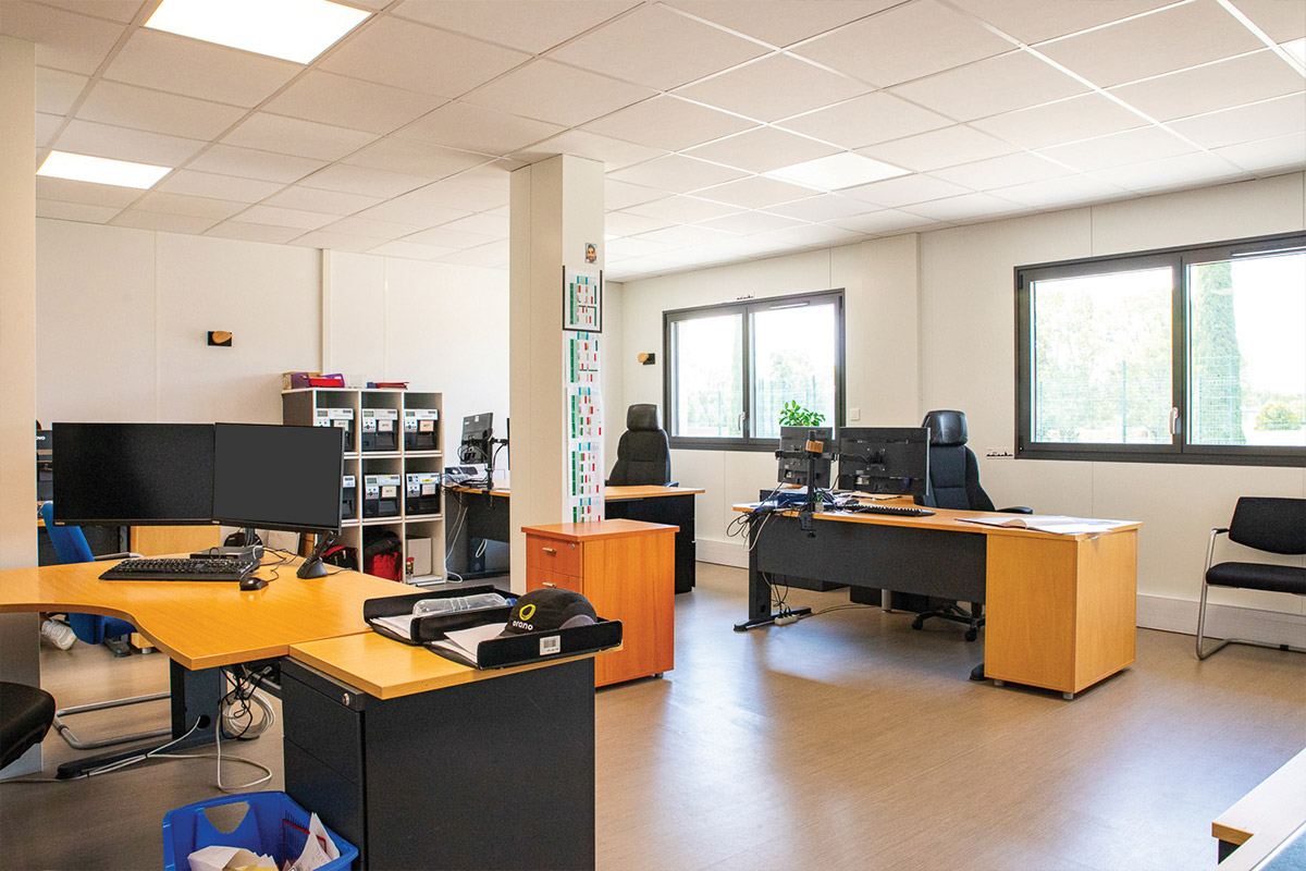 Il comprend plusieurs bureaux, des salles de réunion et de stockage, un réfectoire ainsi que des vestiaires.