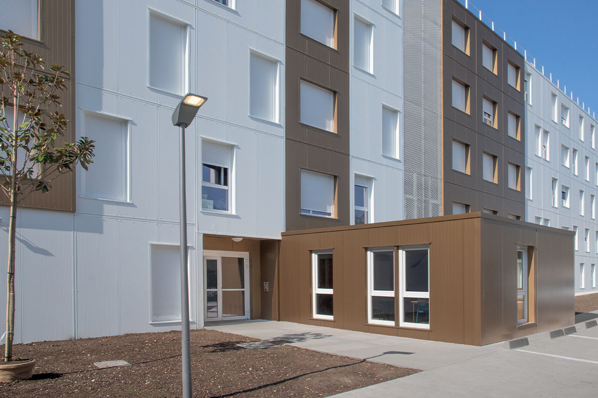 Compte tenu de ces contraintes, SOLIDEO s’est orientée vers une solution hors-site. A l’issue d’un appel d’offres, elle a sélectionné l’expertise de Cougnaud pour réaliser ce projet de 6 291 m², sur 4 niveaux, intégrant 224 studios équipés et de vastes espaces de vie communs.