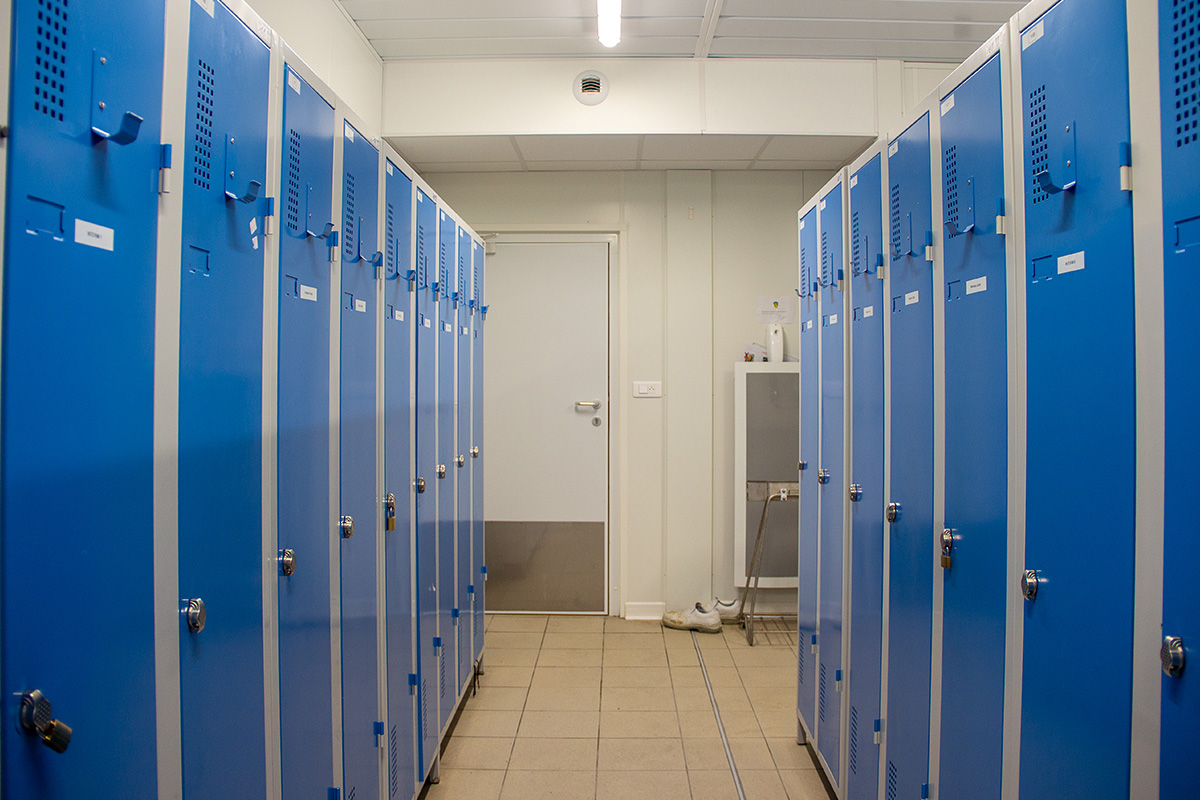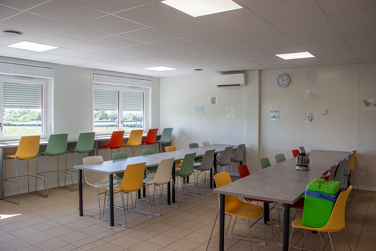 Le premier bâtiment, d’une surface de 222 m², est composé de vestiaires et de sanitaires au rez-de-chaussée, et d’un réfectoire à l’étage, pour une capacité totale de 90 personnes. Le second bâtiment, d’une surface de 186 m², à usage de bureaux, comprend sur 2 niveaux : six bureaux, une salle de réunion, et peut accueillir jusqu’à 12 personnes.